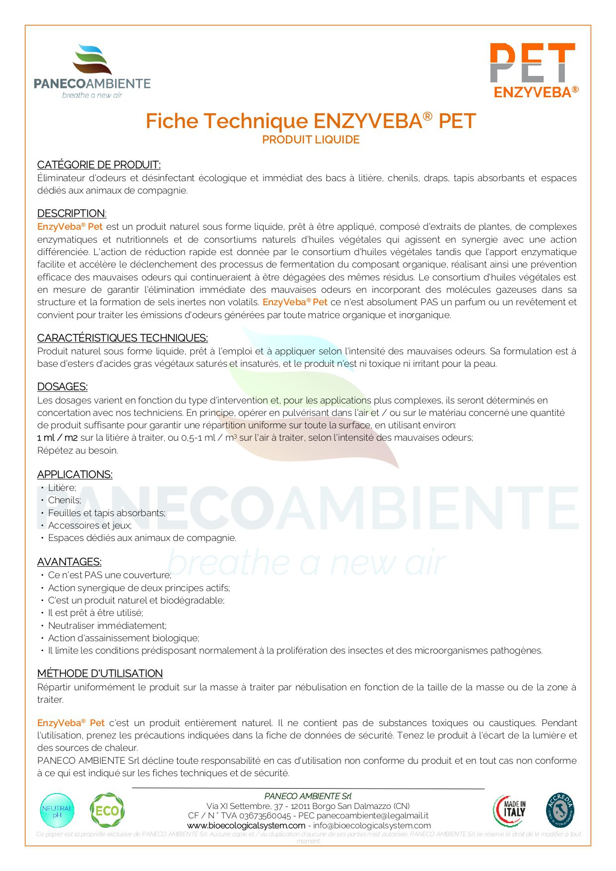 Neutralisant d’odeurs prêt à l’emploi, 100 % naturel et biodégradable, conçu pour les environnements et accessoires liés aux animaux domestiques.
